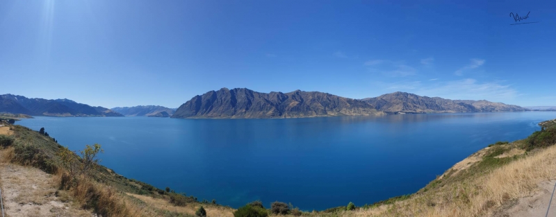 ワナカ湖の隣にあるハウェア湖。こちらの展望台は少し小高い丘があり、綺麗な景色を180度見ることができます。