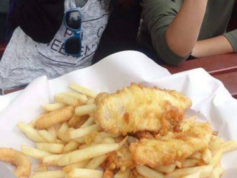 注文待ちのお客さんが店いっぱいに埋め尽くされているのも印象的で、Fish$4(約286円)、ポテトsmall$2(約143円)or large$4(約286円)という値段設定も地元で愛されている理由の1つです。揚げたて、サクサクふわふわの食感は必ず食べたい絶品です。