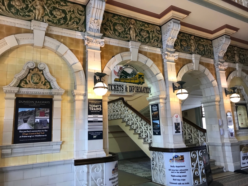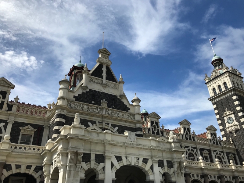 ダニーデン駅舎は一見の価値があります。1906年に完成した駅舎は当時国内最大で、ニュージーランドで1番賑わう駅だったそうです。
