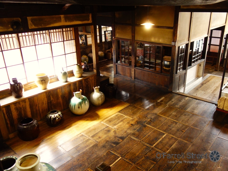 現在正門受付となっている総2階建の門は、両側が土蔵になっていて、当時は米3,000俵を備蓄していた米蔵だったそうです。通用門の収古館には、什漆器や古文書が保管されています。他にも、番頭の住居だった離れの座敷や、博物館の資料として後年移築した古民家も配されています。