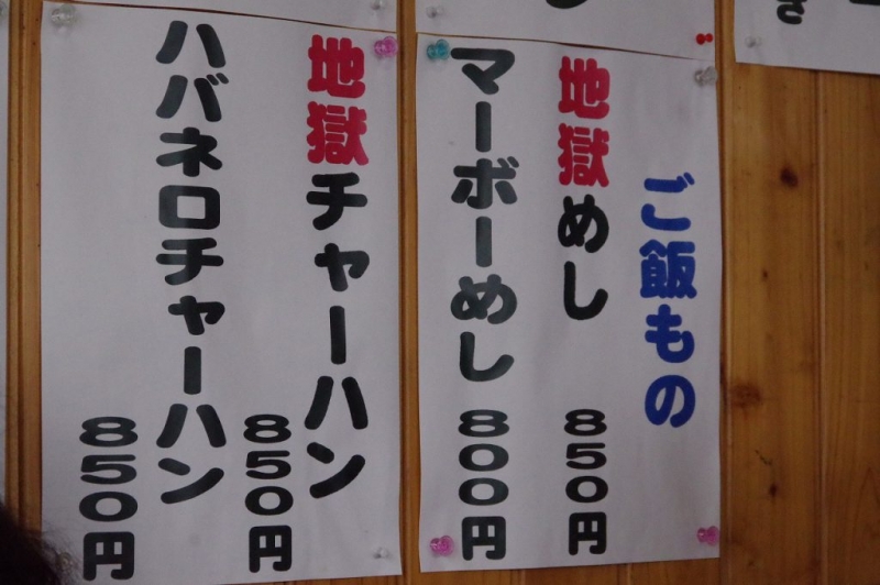 チャーハンなどのご飯メニューもあります。もちろん餃子やキムチもありますよ!もちろん、地獄ラーメンのメニューもちらちらとこちらを伺っています。