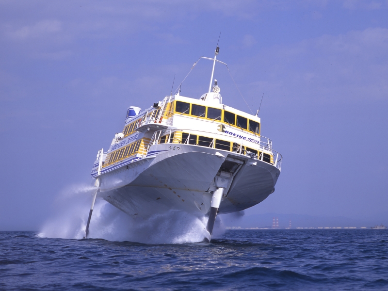 ジェットフォイルは、最高時速80kmで海の上を滑ります。往復どちらかをジェットフォイルにして、高速体験するのも楽しいでしょう。人間だけジェットフォイル、車だけカーフェリーで後から、といった組み合わせもできますので、興味のある方は公式HPでご確認ください。