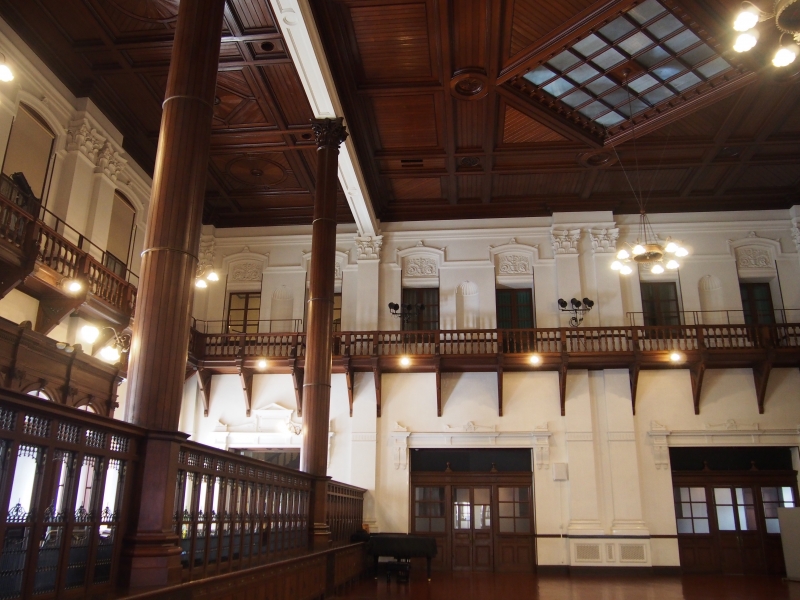 重厚な扉を押して中に入るとすぐにあるのが、高い天井に広々とした営業室です。明治にこの地に来てから、1965年に移転するまでここで営業されていたそうです。現在はホールとしてイベントなどに使用されています。