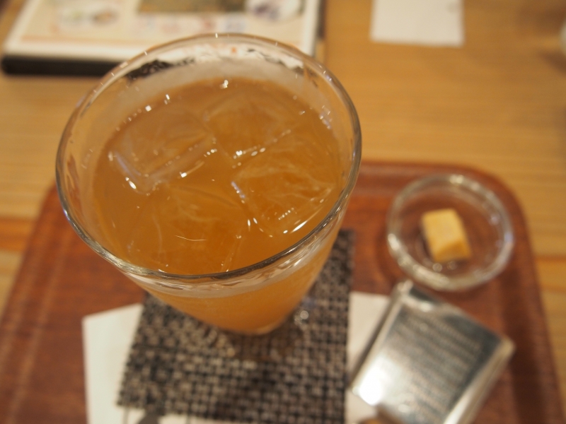 こちらの代表商品「ひやしあめ」をいただきました。小さな生姜とおろし金がついていて、もう少し生姜がほしい場合は自分ですりおろして入れることができます。