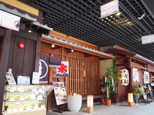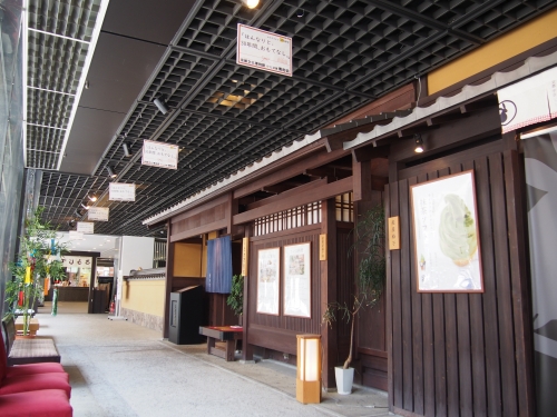 前田珈琲を出て本館の方に向かうと、「ろうじ店舗」というエリアに到着します。本館で展示を見学する場合は、こちらで料金を払って入場になりますが、「ろうじ店舗」には無料で入ることができます。江戸末期の京都の町屋の店構えを再現した通りで、日本料理の老舗「なだ万」をはじめ飲食店や和雑貨のお店が並びます。