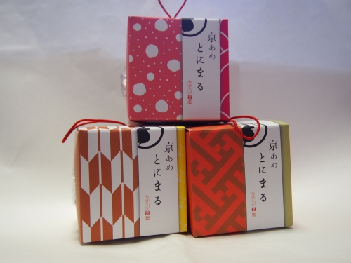 また鮮やかでかわいい京飴がたくさんそろっており、選ぶのにかなり迷ってしまいます。こちらのシリーズは3個で1,080円。いろんな味があってこれもまた迷います。