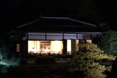 清流園にある茶室「香雲亭」では、お琴の生演奏が実施されています。庭園の川越しに聞こえてくるお琴の雅な音色が響きます。