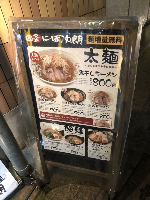 店名にあるとおり、ごりごりの煮干し味。とりあえず煮干しの醤油のラーメンが食いたいんだ!という時には、もう、にぼ次朗しかないだろうといった印象。トッピングなどのメニューのバリエーションも多いです(多様すぎて、初めて行った時には迷うかもしれません)。