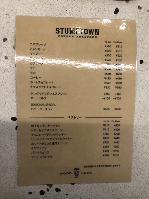 スタンプタウンコーヒーロースターズ京都のメニュー