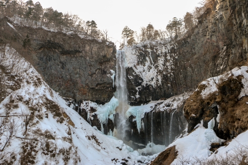 岩壁を勢いよく流れ落ちる”奥日光三名瀑”のひとつ