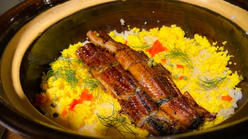 特に筆者が感動したのが、旬彩土鍋ご飯。ふっくらとした鰻の蒲焼と山椒、香草のディルの香りがとても芳醇で、まるで三ツ星レストランで提供される料理のような、旅館のクオリティを超えた料理でした。