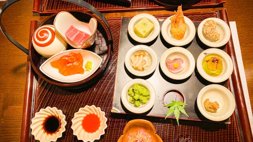 星野リゾート 界 鬼怒川の一番の特徴とも言えるのがお食事。ほとんどが個室タイプのような座席なので、隣や向かい側の席を気にせず、ゆったりとプライベートな食事を楽しめます。お料理は器や盛り付けにもこだわっており、また地元の食材がふんだんに使われているため、ここだけでしか食べられないメニューがたくさん。