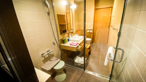 星野リゾート 界 鬼怒川の大きな特徴として、客室露天風呂があります。温泉旅館のシリーズである界ですが、客室露天風呂のついている宿は実は少ないんです。こちらの露天風呂はバルコニー部分に設置されているのですが、室内のシャワールームから直結しており、移動も楽チン。