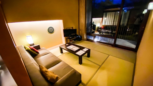 星野リゾート 界 鬼怒川には客室露天風呂付きのお部屋もあるのですが、もちろん大浴場もあります。湯上がり処にはシックな畳の湯上がり処があり、こちらも中庭を眺めながら火照りをさませる空間になっています。冷たいお茶や水も用意されていますので、お風呂上がりにはぜひこちらで寛ぎの時間を過ごしてみてはいかがでしょう。