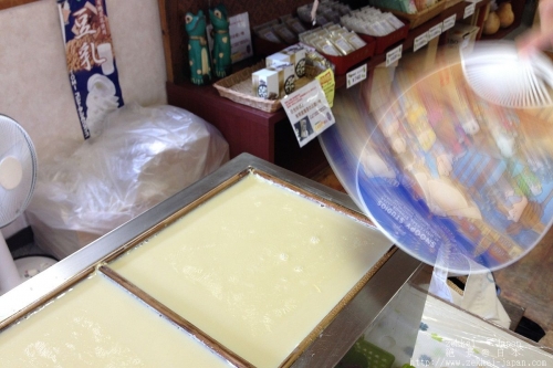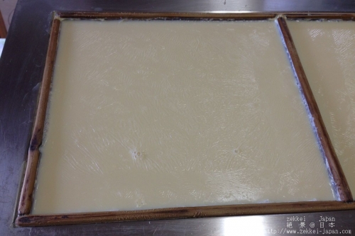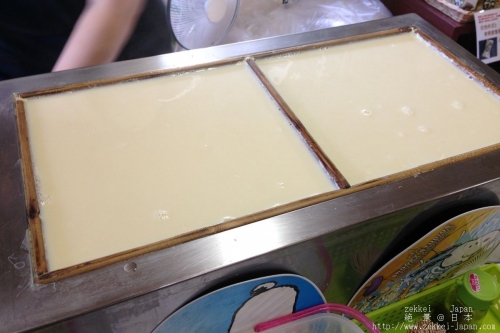 この「湯波」と「湯葉」は、日光は膜を引き上げる時に膜の中央で2つ折りになるように引き上げるのに対して、京都は膜の端から引き上げるという違いがあります。そんな「湯波」の出来る過程を見学し、ゆばの引き上げ体験ができる工場について見て行きます。
