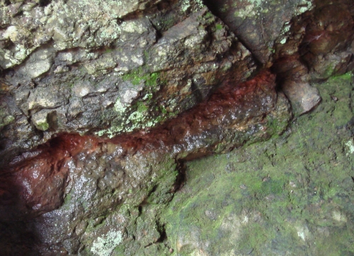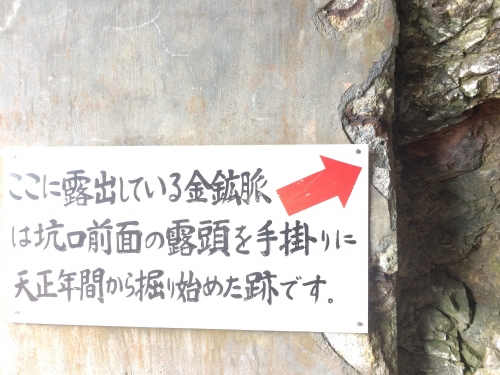 坑道の中には、天正年間(戦国時代)に掘られた金鉱脈の跡も。史跡としてのリアルな金山の歴史を感じられるポイントです。