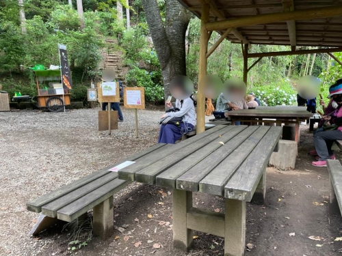 東屋やテーブル・椅子が設置されているほか、焼きだんごやドリンクが販売されているお店もあって、休憩にピッタリのスポットです。