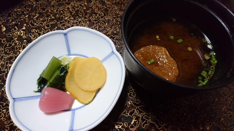 赤出汁仕立てのお味噌汁にはとろろ麩と葱が入っており、あっさりと優しいお味は満たされたお腹にもすっと入っていきます。