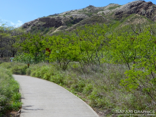 ダイヤモンドヘッドの標高は230m、登山口の標高が61mになるので、その差は169mです。