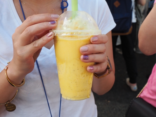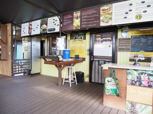 広大な農園の裏では、果物を使った新鮮なスムージーなどが味わえます。