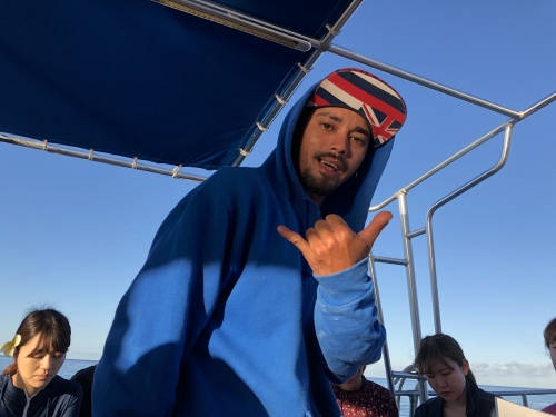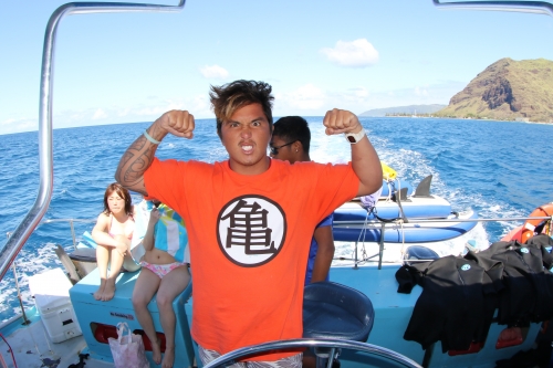 ここまで来ると、本当に波が変わるのを実感できます。カエナ岬を過ぎると、そこはもうオアフ島の北海岸、サーフィンのメッカ「North Shore ノースショア」です。ざっぱーん!ざっぱーん!と波に逆らって進む船は、海の上でジャンプしているような感じ(笑)。