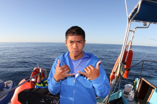 途中でキャプテンが陸に向かって手を降って大声で叫んでいるので、何かと思ったら「あれ、お父さんの車」と(笑)。そんな和気藹々した雰囲気なのです。