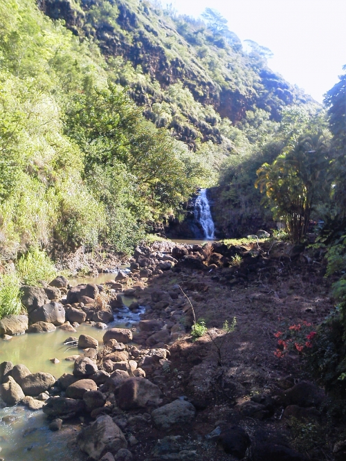 ワイキキから車で約1時間、ノースショアにあるワイメアバレーはファミリーで楽しめる観光スポットです。ワイはハワイ語で「水」、メアは「赤茶」を意味し、鉄由来の赤茶色の土がおりなす美しい渓谷で、一帯が自然公園として整備されています。