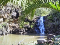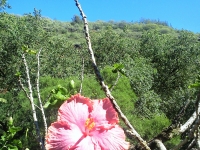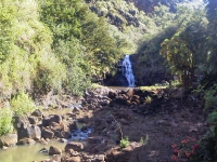 写真:トラベルライター ゴールの滝つぼが見えてきた! |  写真:トラベルライター 泳ぐこともできる滝つぼ |  写真:トラベルライター 珍しい形のコーラル・ハイビスカス |