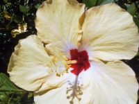 写真:トラベルライター 黄色いハイビスカス |  写真:トラベルライター オレンジ色のハイビスカス |  写真:トラベルライター 緑に映えるピンク色の大きなハイビスカス |