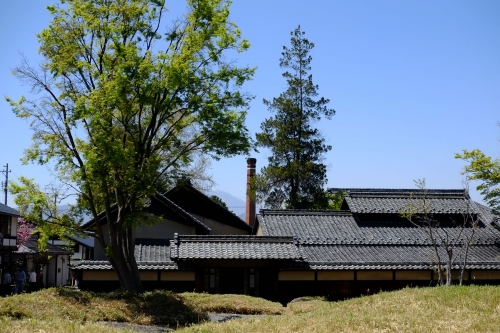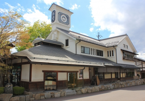 小布施観光の中心部にあり、歴史を感じる佇まいが目を引くのは、栗菓子の小布施堂を経営する市村家の酒造場です。前出の高井(市村)鴻山は、小布施堂一族の第十二代目に当たる人物で、江戸末期には、この酒屋さんを営んでいたそうです。