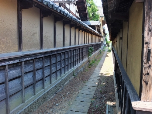 江戸時代中期の1701年から1715年までの15年間、幕府領として陣屋(代官所)が置かれていた通りです。小路の奥には代官所跡を示す石の祠(ほこら)があり、短い距離ではありますが、当時の風情を残しています。
