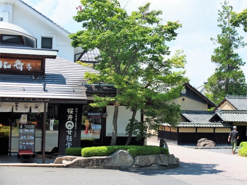 小布施観光の中心部にあり、歴史を感じる佇まいが目を引くのは、栗菓子の小布施堂を経営する市村家の酒造場です。前出の高井(市村)鴻山は、小布施堂一族の第十二代目に当たる人物で、江戸末期には、この酒屋さんを営んでいたそうです。