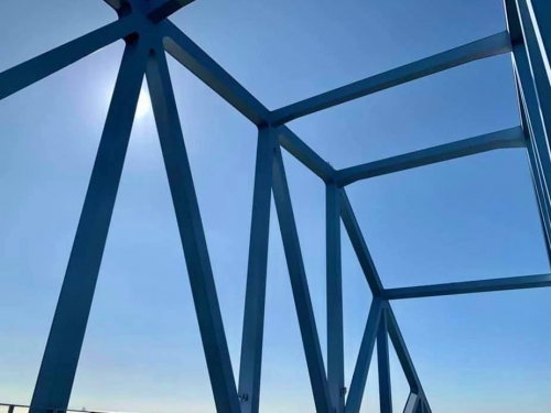 船舶や飛行機の安全な運航のため、鋼材同士を三角形につなぎ合わせたトラス構造が用いられていて、恐竜が向かい合ったような形をしていることから、別名「恐竜橋」とも呼ばれています。