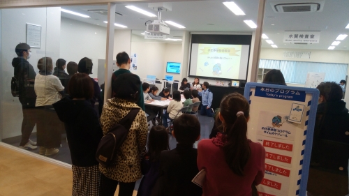 全員が作業を終えた後、下水道管内につまりやすいゴミの種類をお勉強。最後は再び水再生センターに戻って、体験を通じて分かったことを保護者の前で発表してくれました。約1時間のプログラム、かなり充実しています!