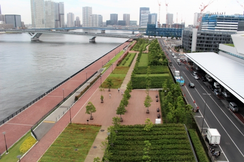 豊洲市場の「屋上緑化広場」にエレベーターで登頂!