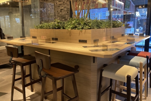 西湘フードスタジアムには、ハンバーグやラーメン、蕎麦、海鮮などが食べられるお店が立ち並び、思い思いの席で飲食ができます。一部の席にはUSB電源やコンセントが備え付けられています。またフロアの一角には小さな子供を遊ばせるスペースもあり、子供を遊ばせながらゆっくり食事をする事もできそうです。