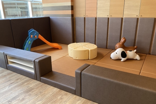 小田原の偉人、二宮金次郎にちなんで名づけられた広場。建物の3階に位置し、小田原新城下町とタワー棟の間にあるオープンスペースです。映画『二宮金次郎』の夫婦像が見守る空間に、パンやカフェ等のお店が並び、広場にある席で飲食を楽しむ事ができます。