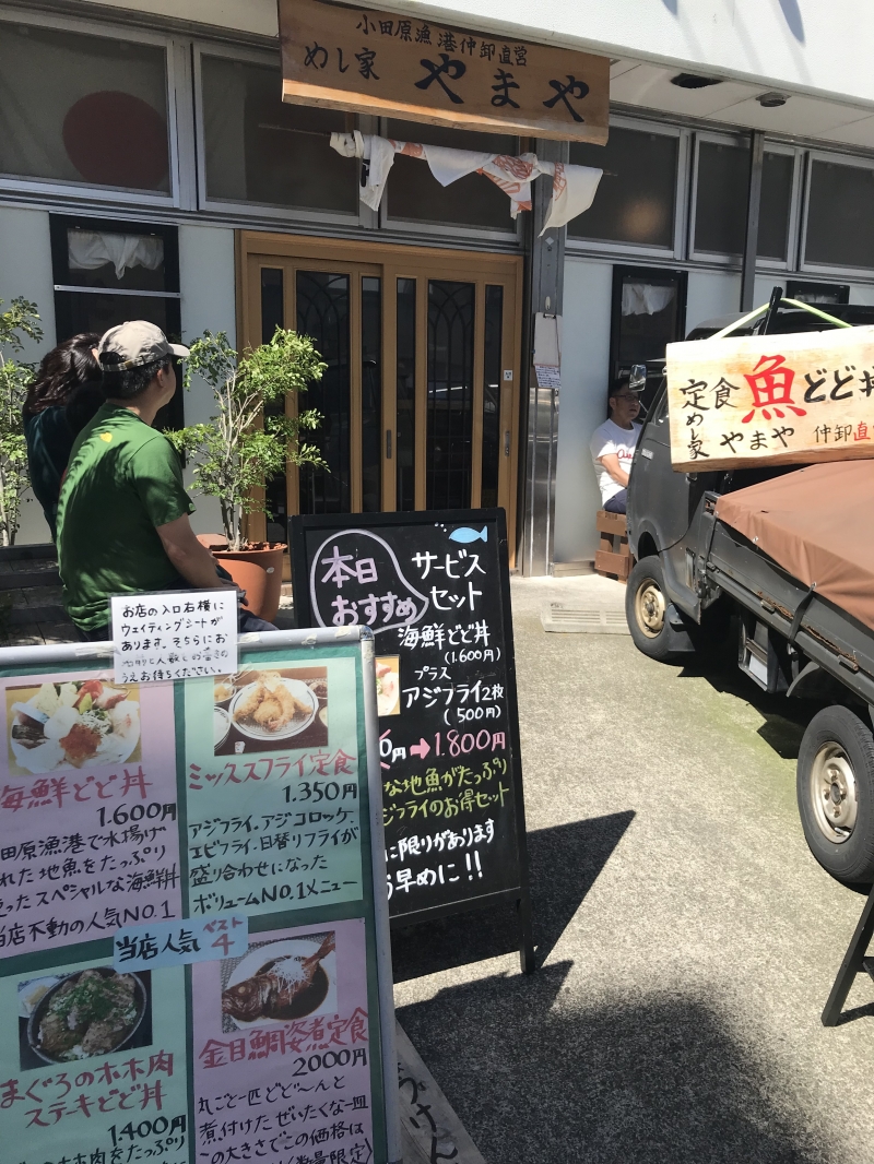 中でもおすすめは海鮮どど丼のセット(セット料金1,800円)、小田原といえば、アジ!是非身がふっくらしている絶品アジフライを食べてみて下さい。