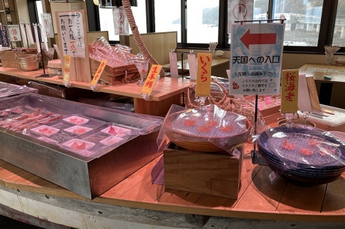 施設1階には、小田原漁港で水揚げされた海産物や地元農家が作った農産物、海鮮を使った珍味や調味料を始めとしたお土産コーナーがあります。