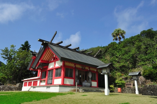 大村地区から歩いて行ける大神山に建っている父島唯一の神社です。1593年に創建されましたが、太平洋戦争で焼失。1978年に現在の社殿が建てられました。毎年11月3日に例大祭が行われ、奉納相撲大会・カラオケ大会が催されます。伝統工芸品のタコノ葉細工でつくられたウミガメのお守りが限定販売されています。また、御朱印、御守、御神籤等が頂けるのは、おがさわら丸の入出港日のみですのでご注意を。(入港日13:00-16:00、出港日9:00-14:00)大神山の遊歩道とも繋がっており、展望台からの景色や、野鳥観察も出来るスポットです。