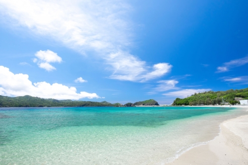南島随一の観光スポットといえば「扇池」。ここが東京であると思えない白い砂浜に透明度の高い青い水は、感動間違いなし!高台から眺めるのもいいですが、ぜひ水中にも入ってみてくださいね。