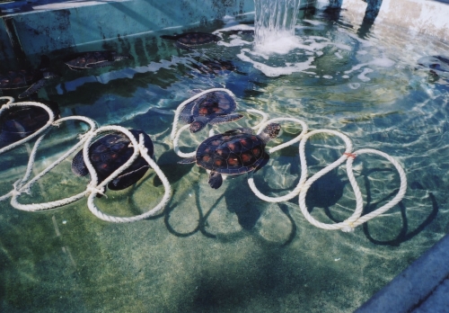 通称「カメセンター」と呼ばれる「小笠原海洋センター」は、アオウミガメやザトウクジラなど小笠原の生物保護と研究のために、1982年に開設されました。展示館エリアと飼育エリアがあり、入館は無料。カメを飼育している水槽の見学や、飼育状況によっては、放流体験もできます。センタースタッフによる「ウミガメレクチャー」や、館内をまわる「水槽案内」、そして「甲羅磨き体験」もできる「ウミガメ教室(有料)」もおすすめです。