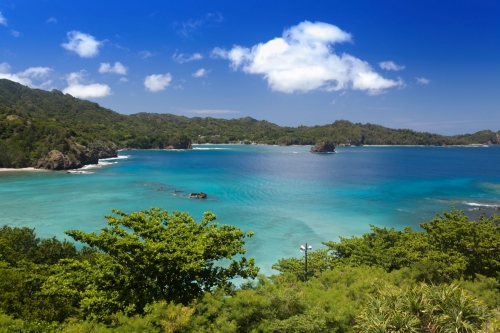 父島の北東部に位置する長崎展望台は、兄島と、兄島瀬戸を望むことができる展望台です。また、眼下にはワシントンビーチを眺めることができます。大村地区から長崎展望台と駐車場への道は、山道でカーブが続く都道240号線で10分程。駐車場から徒歩1分で、視界が開けた展望台に到着します。また、宮之浜〜釣浜〜長崎の約2.7kmを結ぶ「電信山線歩道」で歩いてくることも可能です。絶景をハイキングしたい方は、そちらを歩かれることをオススメします。