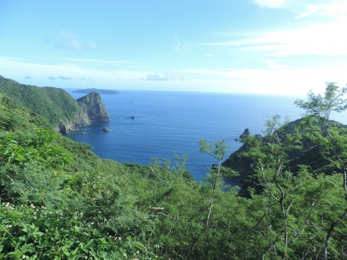 山頂からは母島の姿が一望できる他、眼下には南崎のコバルトブルーの海を見下ろす事ができる絶景ポイントです。母島に出向いた際には是非立ち寄ってみてください。