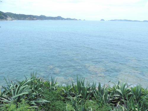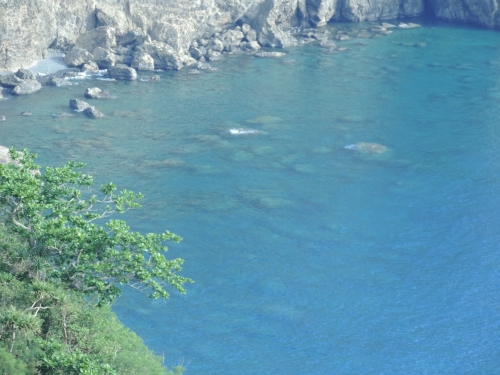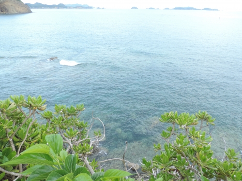 都道沿いに猪熊湾を見下ろす展望所があります。青く澄んだ湾とその先に広がる太平洋の大海原を一望できるポイントです。
