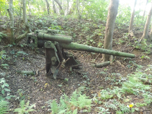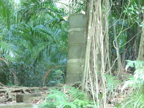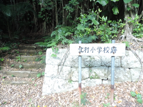 戦前は沖村以外に、島の北にある北村地区にも多くの島民が生活しており、現在も石垣と門柱が残されています。