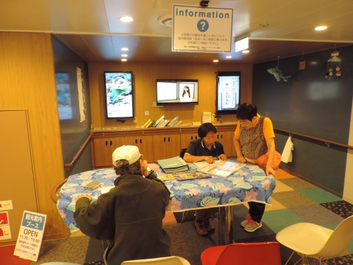 出港後間もなく、島での過ごし方などを紹介してくれるブースが開設される他、パネル展示もあり小笠原諸島に関する情報収集もできます。