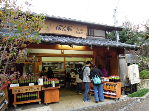 呂川沿いには、漬け物、七味唐辛子のほか、試食ができる「ぽん酢」のお店などがありますので、お土産を買い求めるのも良いでしょう。