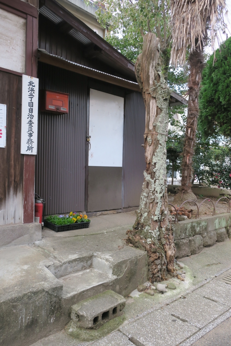お次は隠れた名所に立ち寄ります。別府駅の近くにある海門禅寺の御札所には、ユニークな木があります。その名も「座る木」。テレビ番組『ナニコレ珍百景』にも投稿されました。