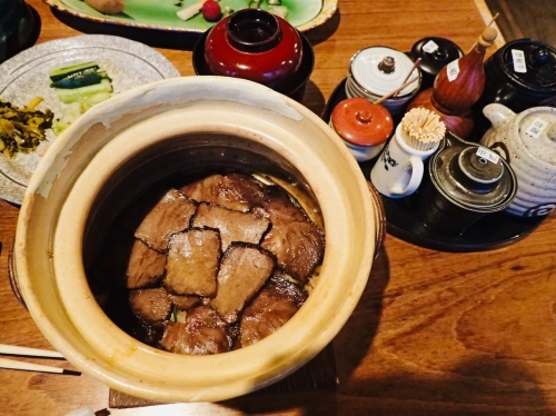注文してから土鍋で炊き上げてくれるひつまぶしは豊後牛、地鶏、ウナギの3種類があり、どれも絶品です。(地鶏まぶし2,350円、豊後牛まぶし2,400円)
